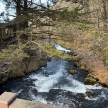 Отель расположен примерно в десяти минутах езды от станции Кавагутико. По приезде можно позвонить в отель, и водитель заберет вас через полчаса. Территория отеля очень красивая, создается впечатление, что он встроен в склон горы, умело используя природные элементы: здесь есть миниатюрные мостики, горные ручьи и ландшафтный дизайн, что создает очень уютную атмосферу. Это довольно типичный, традиционный японский отель. Ключи от номеров до сих пор обычные, физические. Цены в отеле также приятные, в стоимость включены ужин и завтрак. Ужин был великолепным — типичное японское комплексное меню, очень изысканное. Плюс есть саке-бар с безлимитными напитками, что очень здорово. Мы забронировали номер с видом на Фудзи, и, сидя у окна, можно любоваться прекрасной горой Фудзи. Однако я настоятельно не рекомендую этот отель самостоятельным путешественникам, так как передвижение крайне неудобно. Отель предоставляет трансфер только утром, каждые полчаса, чтобы отвезти гостей, а днем его нет совсем, что очень негибко и создает сложности. После заселения в 15:00 по сути можно лишь прогуляться по окрестностям; до основных достопримечательностей Фудзи добраться невозможно. Это единственный существенный недостаток. Для местных жителей, ищущих отель для спокойного отдыха, это очень приятный вариант. Здесь также есть онсэн и представления с барабанами тайко.