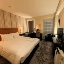 Расположение отеля великолепное! Выйдите через выход Чикуши (восточный) со станции Хаката, пройдите вперед через улицу и пройдите несколько минут, пока не увидите супермаркет Lawson, который приведет вас к отелю. Номер в отеле чистый и гигиеничный, а пространство просторное. В него поместится даже большой чемодан размером 28 дюймов. На 4 этаже отеля имеется курительная комната, а также микроволновая печь для самостоятельной стирки и сушилка. На этаже B1 отеля есть ресторан якинику 🥩, а также доступна услуга хранения багажа! Рядом находятся универмаг Hankyu, подземный торговый центр Hakata и аптеки, что делает совершение покупок очень удобным. На улице Хаката Рамен большой выбор блюд, и все они очень вкусные! Отель находится всего в 10 минутах езды от аэропорта на такси или автобусе, что заслуживает рекомендации!