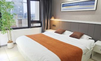 公寓就在萬達商圈,步行幾分鐘就到萬達廣場,吃飯逛街超方便,房間設計是簡約的ins風,採光好,窗外有一片草地,視野開闊