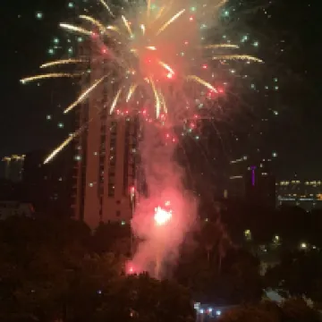 Это самый экономичный отель во время китайского Нового года. Вечером я увидела красивый фейерверк из окна номера. Мне понравилось. После отъезда на следующий день я подарила детям полотенца.