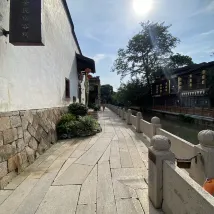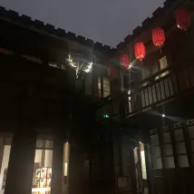 This looks like a family run minsu. It's a very old residence right at Sangxiahang, and the canal is in front of the minsu. We stayed at the ground floor. You can hear footsteps on the wooden floors upstairs. The taxi will not be able to stop right in front of the minsu so you have to drag your bags a short distance to the place. It would be good service if the staff wait at the roadside to guide us in. At night it is very beautiful with the lights and reflection on the water. The lady boss was considerate and obliging.we requested for additional water and was given a 5 liter bottle of water. We thought the room lights were dim, so they put in a standing lamp. We booked for a 3 person room. Room size and space is rather limited for 3 adults.The room and beddings are clean and fresh. Poor internet signal strength in our room which is located in a corner on the ground floor. There could be more international socket points. Past reviews raved about the decor and condition of the place so I set my expectations rather high. Breakfast was a set, serving typical Fuzhou cuisine like fish balls a thin skinned wonton soup, steamed sponge cake and meat bao
