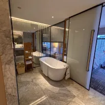 Ответ от объекта размещения: 尊敬的賓客您好!很榮幸您選擇入住我們梅園光明港店,您的滿意是對我們最好的認可!您提的建議我們也會重視改進,希望下次您來,能給到您更好的入住體驗。閩都文化園林酒店,首選光明港梅園!酒店矗立在光明港公園內,也被評為“福州最長公園內酒店”,依山傍水,氣質絕佳。酒店位於三環出入口,機場與高鐵站均在30分鐘半徑圈內,交通便捷,且設有機場大巴。酒店內配有機器人管家為您服務,帶您體驗客房智能化。另,酒店24小時天然温泉水直供,搭配專業定製的中草葯浴包,可為您洗去旅途中的疲憊。周邊網紅打卡點處處皆是,地標性景點快速可達,非遺特色餐品——梅園醬鴨,口感富有濃郁地域特色,中式與科技的靈魂碰撞,閩派園林與都市氛圍的相互融合,更多驚喜等您來解鎖。非常期待您能再次光臨我們酒店,讓我們有機會為您提供更加優質的服務,祝您生活愉快,有時間常回來看看