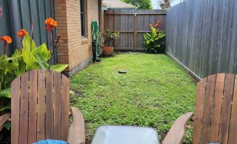 Stay within walking distance to restaurants, just a 5 min drive to the beach, great shopping with The Strand, Pleasure Pier, Moody Gardens and Schlitterbahn all just mins away.About pets:No pets allowed.About checkOut:Check out before 11:00 AM.About children:Children allowed: ages 0-17.About customRules:Do not eat in bedrooms. Do not rearrange furniture. Quiet Time After 11:00 pm. Turn off lights, electronics and lock windows and doors..Please only flush toilet paper in the commodes. Please leave used towels in the bathroom. Remove the trash bag, place in Large Trash Bin by gate.,NOTE: Fishermen and fisherwomen, please do not dispose of Live Bait or Fish Guts in trash bin/receptacle. Please dispose of it elsewhere. Thanks!.About checkIn:Check in after 4:00 PM.About smoking:Smoking is not permitted.About minBookingAge:Minimum age to rent: 25.About events:No events allowed.