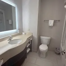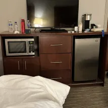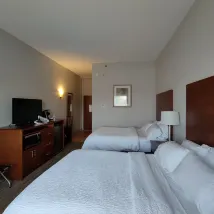 It was our second time staying at Holiday Inn Express & Suites Gananoque, and our stay was a good one. The hotel is close to cafes and restaurants, which made it easy to pick up some food on the way. The room was clean, although it had a little bit of a damp smell when we entered for the first time. The complimentary breakfast was very good. It was a good place to stay on the way to our destination, and we would stay here again due to the good prices.