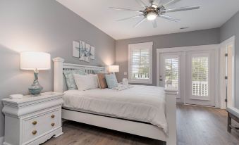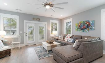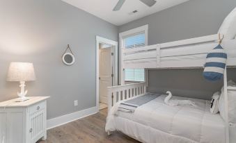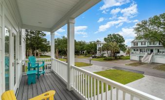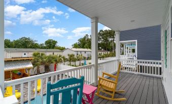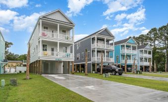 This beautiful, brand new raised beach house has plenty of space to roam but also enjoy vacation time together. A sprawling 8-person dining table and 3 top eat-in kitchen counter allow everyone to have meals in the same space, perfect for making amazing memories! Enjoy the privacy of each bedroom having its own attached bathroom, as well as a convenient half-bath on the main level. The top floor is home to the master bedroom with an attached spa bathroom, walk-in closet, and a private balcony overlooking the Garden City Inlet. Also upstairs, you'll find a queen suite overlooking the pool deck, and two bunk suites - one with 2 twin beds, and one with a twin and a full. On the main level, you'll find another queen suite that also overlooks the pool deck, the half-bath, as well as the kitchen, dining, and living area. The main level also has a front balcony with INlet views too!