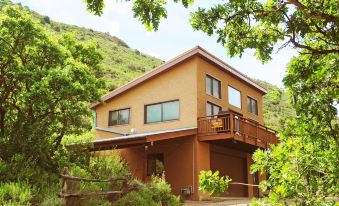 Please also note that the driveway serves 3 other residences, spread out on more than 10 acres (plus 10 acres of mountainside). The nearest house is 30 yards away. Casa Del Sol sits on top of a garage, which is simply used for storage (not cars). We live in the next house over, and we have great relationships with each of our neighbors. The families include children and a few friendly dogs.