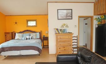After turning off 4 mile and driving over the creek, you will arrive at Casa del Sol by walking up flagstone patio steps and entering a spacious, sunny studio. There is a bedroom nook with a comfortable king size bed, a fully stocked kitchen, cozy kitchen table, and a large soft couch for relaxing. There is a spacious bathroom which includes a closet and a washer and dryer. The living space has multiple wide windows looking out to the mountains. You have your own balcony where you can enjoy the views of Mount Sopris. The vaulted 20-foot ceiling allows there to be a comfortable open loft accessible by a ladder where you will find a full bed and living space.