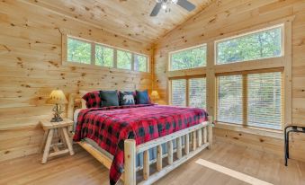 Sugarloaf cabin is a 2BDRM/2.5BA King Bed with bonus room (King Bed) cabin defined by comfort and luxury. Enter through the front door and find yourself in a beautiful living space with rear deck connecting you with mother nature with seasonal views. We offer private king bedrooms each with a full-size bathroom equipped with a full walk-in shower. The bedrooms also have lovely french doors that open up to the rear decks. The kitchen is equipped with all amenities and spacious for your family.