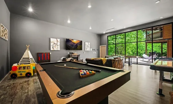 Detached Game Room helps accommodate different schedules - have fun while other members of your group are enjoying their quiet time at the cabin!