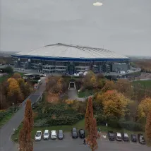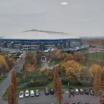 Kurzer Weg ins Stadion, klasse Aussicht über die Arena auf Schalke.