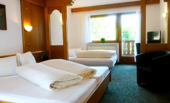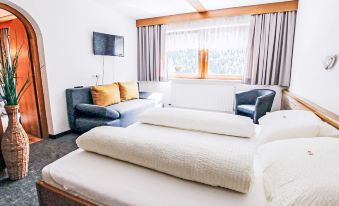 Feichten: Cosy apartment block "Tia Apart", 4 storeys. Above Feichten, in a quiet, sunny position. In the complex: reception, restaurant, bar, sauna, steam room, solarium (extra). Relaxation room, spa area, playroom, central heating system. Parking at the house. Bus stop "Kaunertal Grasse" 130 m, railway station "Ötztal Bahnhof" 49.2 km. Includes: TIA card - entry to Ried bathing lake, Prutz outdoor pool, entry to Quellalpin leisure centre, nature park tours, entry to the valley museum. "Please note: There is no daily cleaning, only a final cleaning, which is optionally payable on site, or the final cleaning must be carried out by yourself on request, as found: - 1-room apartment €40, - 2-room apartment €50, - 3-room apartment €60". "Dreizimmer-", 3-room apartment 75 m2. Comfortable furnishings: living/sleeping room with 1 double sofabed, dining nook and satellite TV (flat screen). 2 double bedrooms. Kitchenette (oven, dishwasher, 4 ceramic glass hob hotplates, microwave, electric coffee machine). Shower/WC. Balcony. Balcony furniture. Beautiful view of the mountains. Facilities: Internet (WiFi, free). Please note: non-smokers only.