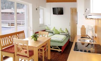 Perfekte Lage, nur 3 min zu Fuß zur Gondel und super Unterkunft mit toller Sicht auf die Berge. Die Gastgeberin ist sehr freundlich und hilfsbereit. Zum Kochen fehlen zwar Grundzutaten wie Salz, Pfeffer und Öl, aber das kann man sich auch im Ort besorgen.