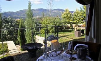 Stylish mid century modern architecture. Glass, concrete and interesting geometry. Decorated with flair. Extremely welcoming and attentive staff. Surprisingly excellent meals delighted our large group of sophisticated travelers. Excellent choice if you are visiting the region. I find the “small luxury hotels” brand to be consistently on target and Carmos was no exception - first rate boutique country hotel.