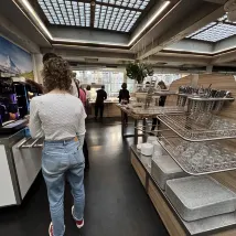 Номера и ванные комнаты были очень чистыми. У каждой двухъярусной кровати был свой небольшой светильник и зарядное устройство. Однако душ был кнопочным, и горячая вода была немного нестабильной в часы пик, приходилось нажимать кнопку во время принятия душа (довольно необычный опыт!). Ещё один плюс — наличие лифта! Это настоящее спасение для тех, кто путешествует по Европе самостоятельно! Нам понравился завтрак, предоставленный отелем, — шведский стол. Выбор был ограниченным: кофе, молоко, хлеб, йогурт, хлопья, сок, сыр, ветчина и фрукты — не слишком разнообразный, но всё же довольно сытный!