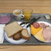 Завтрак средний. Мягкий тост кажется сухим после долгого отсутствия.