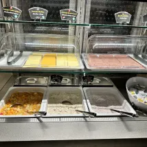 Завтрак хороший. Общественный вестибюль и ресторан открыты 24 часа в сутки, где гости могут посидеть и отдохнуть. Еду можно принести с собой.
