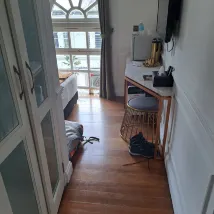 Мне очень нравится этот отель. Номера небольшие, но очень чистые. Полы из твердой древесины. Вы, вероятно, можете описать его как необычный. Персонал очень дружелюбный и сделает все возможное, чтобы помочь вам. Вам придется снять обувь в вестибюле и положить ее в надежный шкафчик. Живя в Бангкоке, я полностью это понимаю. Он защищает лестницу и номера от городской грязи; поэтому полы в коридорах и номерах тщательно чистые. Расположение идеальное и тихое для пребывания в городе. Вокруг много ресторанов. Также у них есть 5G Wi-Fi, который был довольно стабильным по сравнению с другими местами.