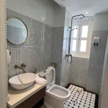 Номера небольшие, поэтому вам нужно быть благоразумным, распаковывая и расставляя свои вещи. Фильтр для воды на первом этаже — большое преимущество с горячей и холодной водой.