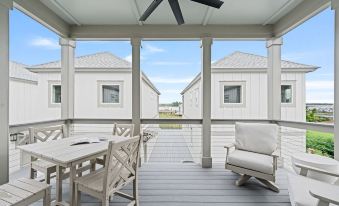 DETAILS: Winyah Bay Club features 17 stylish, individual cottage units, each ideal for large wedding parties, golf enthusiasts, and families. This cottage offers two spacious bedrooms, two and a half baths, and a master suite with breathtaking water views. The open-plan living room, kitchen, and dining area on the second floor are designed to maximize the stunning waterfront vistas, making every stay memorable and luxurious.