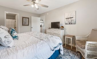 Primary Bedroom: King Bed Private Bathroom with Shower/Tub Combo