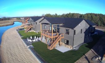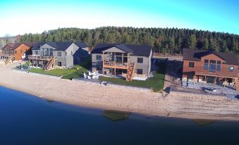 With a private beach out your back door, you'll forget your worries in this spacious and serene space. A sprawling brand-new build, Sunset Shore has 5 bedrooms and 3 baths, sleeping up to 16 comfortably. Enjoy the gentle breeze on the private beach, go for a swim in Sunset Lake, cheer for your team on the new 75" TV at the garage bar, relax with a session in our premium massage chair, or gather around the fire pit & stargaze. If you are looking for the perfect getaway, come be our guest.