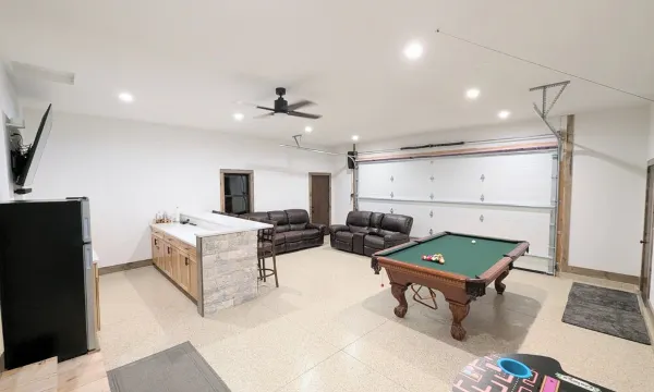 Our lake house is unique - we have a fully finished garage that is heated/cooled with tons of amenities: wet bar, pool table, 75" TV, darts, arcade, and more!