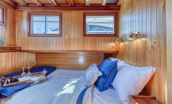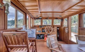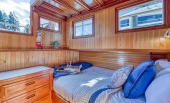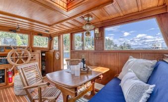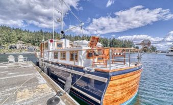 Floating cozy and charming "Blue Goose" is located in the heart of Gig Harbor where all of the historic sites and restaurants are within a short walking distance. Rare boat at a rare historic net shed and dock. Use the provided kayaks to paddle around lovely Gig Harbor--or paddle to the Tides Tavern or Anthony's seafood for lunch! Complete with two en suite staterooms, a cozy living room, and a view of sunsets and Mount Rainier! Sit on the upper deck for coffee/cocktails, bbq, watch activity.