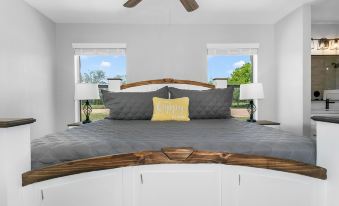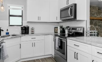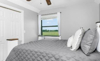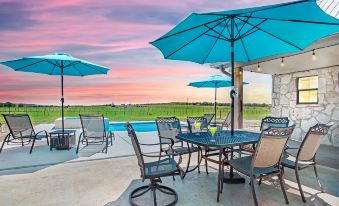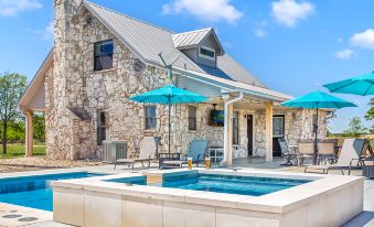 Das Steinhaus is an inviting home for couples, families, and groups who want a relaxing stay set within an authentic Texas experience. The peaceful surroundings will allow guests to immediately unwind and feel that their getaway starts right when they check in. Morning coffee or an evening cocktail can be enjoyed on the gorgeous porch that offers a view of the cattle and horses in the pasture. Apart from the comfortable sleeping accommodation, there are all the amenities that make the experience one of a kind; pool/hot tub, outdoor stone fire pit, Outdoor Television on patio, indoor fireplace, full kitchen for dining and comfortable lounge area. Guests are perfectly located in the heart of the Texas Wine Trail. Some of the most popular Fredericksburg wineries are less than 5 minutes away, and the property is only minutes from the historic Fredericksburg downtown area. The iconic town of Luckenbach is just 3.4 miles away, less than 5 miles from the Wildseed Farm, Alstadt Brewery and Trade Days. An unexpected treat is that guests can pick fruit from the orchard on the 2 acre property, in the late spring and early summer.