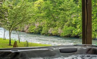 Enjoy all this from a five-star cabin that includes details such as professional hair care products, luxurious bedding and towels, a fully stocked gourmet kitchen, a game room with 3/4 Ping Pong and Foosball, a movie room with a 65" Smart TV, Sound Bar, DVD/Blu-ray player, three fireplaces(one firepit) to choose from, a wide assortment of board games, poker set, cards, a luxury Bull Frog Hot Tub with lounge seat, 3 king masters including 2 with balconies overlooking the river. You simply will not find a nicer cabin in a more idyllic setting.