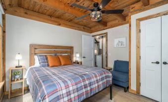 Please note that while access to the cabin is generally easy(we drive a Hyundai Sonota Hybrid), the last ~1/3 of a mile is on a community maintained gravel road. Parking is off-street and there are just a few stairs to enter the cabin.