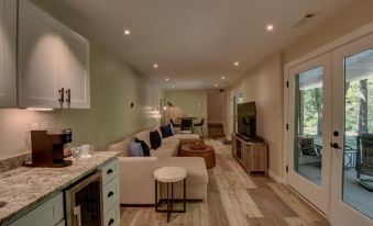 This cabin was amazing! This kitchen was the best stocked of any cabin we’ve rented in the past. We enjoyed the beach as well as the deck for relaxing by the creek. Overall the cabin was beautifully decorated with very comfortable bedrooms, enough for our party of 12. We’ll definitely book it again!