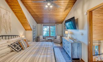 Take in the long range mountain views at Ridgeview Cabin in the exclusive Walnut Mountain community! All paved roads to this mountain-top retreat where you will find a everything you need for a relaxing mountain getaway! Drink your morning coffee or tea on the expansive, screened in main-level deck. Enjoy additional outdoor space on the terrace level deck. Enjoy the gas fireplace in the main living area as well as cable and high-speed internet. Flat screen tv's in all bedrooms and new beds and bedding. The loft level master has a queen bed and sitting area with amazing mountain views. The terrace level master is has king bed and large walk-in closet. The main level bedroom has two twin beds and bathroom shared with the main living area. You will also find an additional common area on the terrace level with pull out sofa and additional seating area for meals, games and puzzles. Hiking, streams and lakes within the community as well as community pool and tennis courts. Explore downtown Ellijay just minutes away and Blue Ridge within just 25 min. Exlpore the Cartecay River, area wineries and apple orchards within a 20 min drive. You will also find the beautiful Amicola State Falls hiking area just 25 miles away. Come see why Ellijay has become a top vacation destination in the beautiful North Georgia mountains!About pets:Pets allowed: dogs (limit 2 total).About checkOut:Check out before 11:00 AM.About children:Children allowed: ages 0-17.The home is not “childproof”..About checkIn:Check in after 4:00 PM.About smoking:Smoking is not permitted.About minBookingAge:Minimum age to rent: 25.About events:No events allowed.