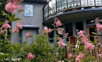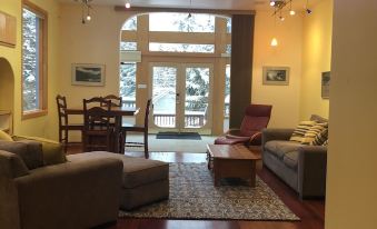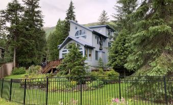 Beautiful stained glass throughout this tall, iconic Girdwood house with two full kitchens, large enough to accommodate twelve. On the bike path and less than a mile from the ski slopes, restaurants, and hiking trails.About pets:No pets allowed.About checkOut:Check out before 12:00 PM.About children:Children allowed: ages 0-17.About checkIn:Check in after 3:00 PM.About smoking:Smoking is not permitted.About events:No events allowed.