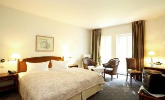 Светлые и просторные номера четырехзвездочного отеля-ресторана Freimuhle располагают уютным гостиным уголком и собственной ванной комнатой. Полы выстланы мягким ковром.