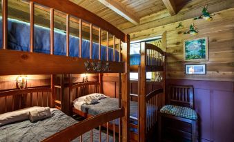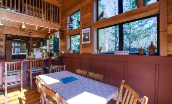 This cozy 2-story 2+ bedroom 2-bath cedar cabin has everything that you need...and then some! The 1st floor features an open living/dining area with a wood burning fireplace (firewood provided), a fully equipped kitchen, one bedroom with 2-sets of bunk beds, a laundry cubby with a stack washer/dryer, and a 1/2-bath. The 2nd floor features one bedroom with 1 double bed, an open loft sleeping area with a Hide-a-bed, and a 3/4-bath. Right outside the back French doors is a nice deck with a gas grill and a private outdoor hot tub! This pet-friendly vacation property will sleep 6 to 8-persons! (enforced Maximum Occupancy!).