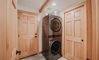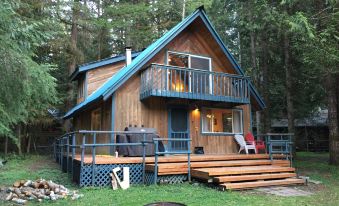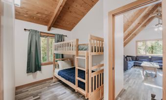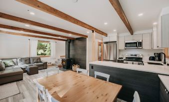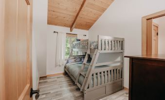 Modern yet rustic best describes this extensively remodeled 2-story, 3- bedroom, 1.5-bath family cabin. The interior was virtually gutted right down to the studs, and everything and I mean everything was refreshed right down to the walls, doors, and trim! Stepping inside, you’ll be delighted with the brand new composite wood flooring, the fully equipped kitchen with new cabinetry, a wraparound counter, (great for food prep) all new higher-end stainless appliances including a built-in microwave and a dishwasher, an open and airy living/dining area with a new freestanding wood fireplace, (firewood provided) a remodeled full bath, one bedroom with 1-king sized sleigh bed, and a laundry/mud room with a new full-size stack washer/dryer. Ascending the staircase to the second floor reveals an open loft bonus room with a large and comfy sectional couch and a flat-screen monitor, one bedroom with a 1-twin over full-sized bunk bed, and another bedroom with 1-set of regular-sized bunks. A separate ½-bath can be privately accessed from either bedroom. A private outdoor hot tub is located just steps away from the back door, and an outdoor gas grill is located on the front deck. If you’ve previously stayed in this cabin…you’re going to be blown away by all of the updates! Don’t forget Fido…this pet-friendly (two pet maximum…no exceptions), wifi equipped, and monitored family vacation property will sleep up to 7-persons (Enforced Maximum Occupancy!).