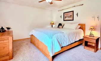 🛏 Main Level: Master Bedroom with King Bed and ensuite full bathroom, Second bedroom with a queen bed. There is a 2nd full bath, fully equipped kitchen, open living/dining, private deck with stunning mountain views.
