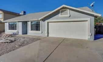 Welcome to our beautiful vacation home in sunny Glendale! The front door opens to the street for an easy walk to the Westgate Entertainment District and the State Farm Stadium. A spacious 2100 square ft 4 bedroom/2 bath home. The amenities include a beautiful backyard, a patio, a grill, TVs, WIFI, and a spacious kitchen with all the items needed for preparing meals!