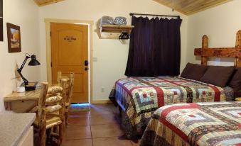Newly built Cabins in a scenic location midway between Zion National Park and Bryce Canyon. East Zion-Glendale Ranch Cabins offers a quiet , western atmosphere. Located in Glendale, Utah, right in the middle of scenic Southern Utah. Stay in one of our 4 cabins and experience, rustic cozy comfort with all the modern conveniences. Each cabin is equipped with a regular sized bathroom, full sized washer/dryer(for your convenience from traveling/hiking), 2 super comfy Queen beds, Mini fridge, Microwave, Toaster and Coffee pot.