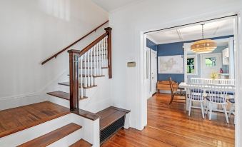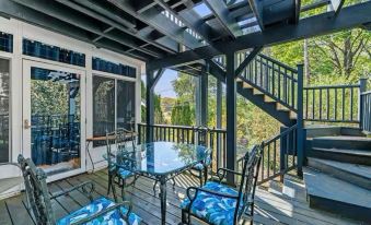 Pull up to this cozy townhouse and park in your private off-street parking space. Step inside and you’re welcomed by a cozy living room space on your left with plenty of seating. The living room is complete with a Smart TV and boasts lots of natural light. Board games provided for cozy nights in. Make your way into the full kitchen, with all the amenities and appliances you need for a home cooked meal. A dining room with a large table with space for 8 is located right off of the kitchen.