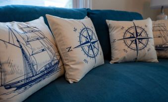 Enjoy being directly across from the ocean and tennis and bocce courts! The home includes tennis rackets, bocce set, and beach gear. Stage Fort Park is also across the street featuring beautiful Half Moon beach, playground, and plenty of picnic spots.