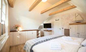 Stretch and stretch in the 1.80mx 2.00m large double beds that are available in all three sleeping areas and enjoy the fresh sea breeze in summer and winter, protected by mosquito screens on the windows. Two of the three bedrooms have a TV and invite you to romantic movie nights.