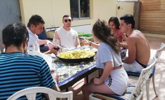 It is a private villa of 120 m2 including 5 rooms distributed between the main house and a new wooden cabin of 35 m2 apart from the 120m2, each with a single bathroom, a kitchen and a living room, as well as a common playground , all within a plot of 3500 m2 of fruit trees, a paellero where you could start the typical Valencian paëlla, a pool, you can park several vehicles, cars and caravans.