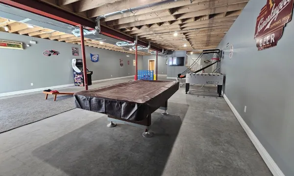 Designed for bringing family and friends together, entertaining and making memories! This newly built 5 bedroom, 4 bath home, sleeps 22! There is an abundance of outdoor space, not only for parking large trucks and trailers, but for outdoor fun, as well! Located in a secluded, quiet area, within walking distance to Val Du Lakes Bar & Grill.