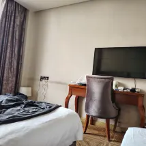 Местоположение отеля легко найти. Он спроектирован в соответствии с оформлением звездного отеля. Номера оборудованы достаточным количеством горячей и холодной воды. Беспроводное соединение Wi-Fi работает плавно и быстро. просторный, есть достаточно парковочных мест. Два лифта быстрые и тихие, завтрак обильный и разнообразный, обслуживание на стойке регистрации теплое и быстрое, благодаря чему вы чувствуете себя как дома, обслуживание номеров полное энтузиазма, номера чистые и гигиеничные, все детали на месте. На стойке регистрации предоставляется бесплатный чай, книжный бар и свежемолотый кофе. Кофе в ухе ☕, высокий уровень обслуживания гостей, спокойный ночной отдых, в общем, это очень экономичный отель 👏.