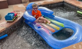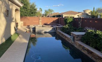As our guest, you will enjoy the traditional outdoor living experience you expect on your Arizona vacation. The backyard oasis features a heated swimming pool and spa, gas firepit, outdoor BBQ station, and lush landscaping. Relax by the pool while listening to the desert breeze blow through the palm trees.