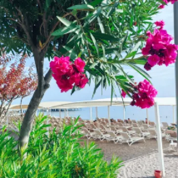 Огромное спасибо за великолепный отдых. Территория отеля очень большая, касивая, ухоженная. Отель находится в сосновом лесу, прекрасный сосновый морской воздух, много зелени, есть мандариновые деревья, клены и дубы, мы нашли жëлуди. На территории есть мини зоопарк, павлины, попугаи, рыбки. Море в октябре было немного прохладное, но приятное, пляж песочек, вход в море камушки. Несколько дней был северный ветер, волны, но солнышко грело от души. Анимация супер, танцевали, пели в караоке, учились играть на барабанах, зажигали на пенной вечеринке. Ходили в СПА, хамам, сауну, баню. Номер в отеле был особенно прекрасен, новый, уютный, чистый, современный. А вид из номера заслуживает особенных похвал!!! Ну и конечно питание и обслуживание на высоте! Особенная благодарность девушке на ресепшине, Софие, она просто фея, исполнительница желаний.
