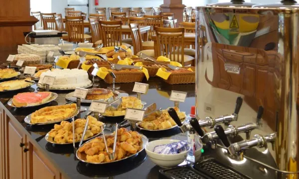 Café colonial, tem bastante opção, todavia me pareceu que são coisas colocadas a semana toda lá, tipo, muito “requentadas” ou no caso de pão “secos”, falta um pouquinho de atenção na funcionalidade do “buffet”……