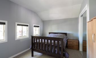 Recently renovated 2-bedroom cottage gives you plenty of space for the family inside as well as a massive amount of space in the double-wide lot outside! Plenty of room for Volley Ball / Badminton and other activities. There is a large firepit and a swing set located on one end of the lot, as well as a covered deck to stay outside but out of the sun to cool down!