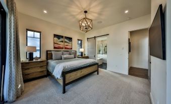 Main floor: Primary bedroom with a king bed, powder room, beautiful gourmet chef’s kitchen with a large island and two dishwashers, great room with large TV and surround sound, dining space, and an additional laundry room. We stock coffee, teas, hot chocolate, creamer, and lots of cooking seasonings.